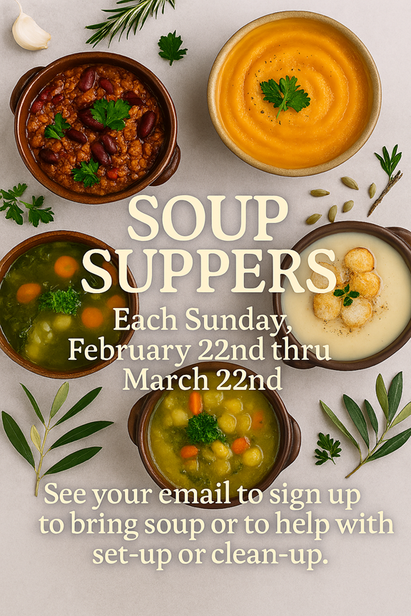 followed by our soup supper at 5:30pm in the Family Life Center.